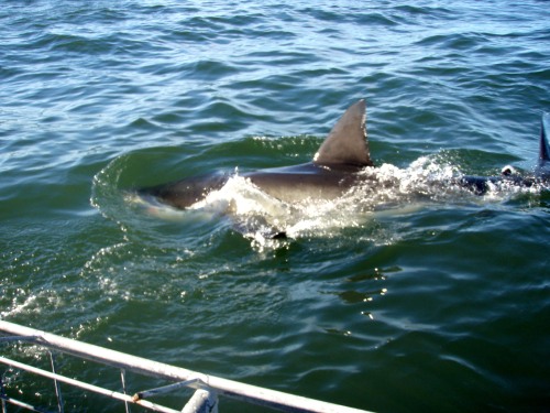 Vi besökte förståss alla de vanliga turistmålen i området med stor behållning innefattande allt ifrån höga berg till vingårdar men jag tänkte berätta lite om de saker som var lite udda och utöver det vanliga. Camilla hade redan innan vi lämnade Sverige bestämt sig för att simma med Hajar och tidigt en morgon begav hon sig iväg tillsammans med Mimmi och Tommi för att ta sig ett dopp med jättebestarna. De här monstren var så långt man kan komma ifrån Mört och Abborre och heter Vithaj eller Great White på engelska och blir normalt mellan 6 och 8 meter. De badsugna som samlats åkte en bit ut från land och brottarfiskarna lockades till platsen med hjälp av halvruttna fiskhuvuden som kastades ut en bit från båten. När Hajarna väl anlänt gjordes en stål bur klar och våtdräkt sattes på då vattnet bara var 13 grader varmt och sedan stod man i buren och Hajarna lockades att simma nära och ibland emot buren. När de kom dök den som var i buren ned under ytan och beskådade den hungriga fisken öga mot öga. Tommi och Camilla gjorde detta med stor bravur och visat mod men stackars Mimmi var alldeles för sjösjuk och hängde över relingen på båtens andra sida. Där gjorde hon något som faktiskt slår ut att simma med dem, hon spydde på en Great White. Respect Mimmi, du är ändå hårdast. Undrar vad Hajen tyckte om saken? Kanske blev han förnärmad och simmade bort i vredesmod tänkande.